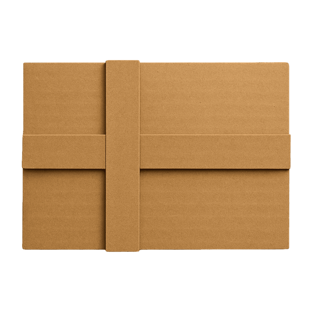 The flap box, also known as FEFCO 0215, is a box designed for quick assembly. Its name comes from the top flap used to close the box. It also features a Swedish bottom, consisting of four interlocking flaps. When setting up the box, the flaps slide into each other to form a solid base. This design means no tape is needed on the bottom.