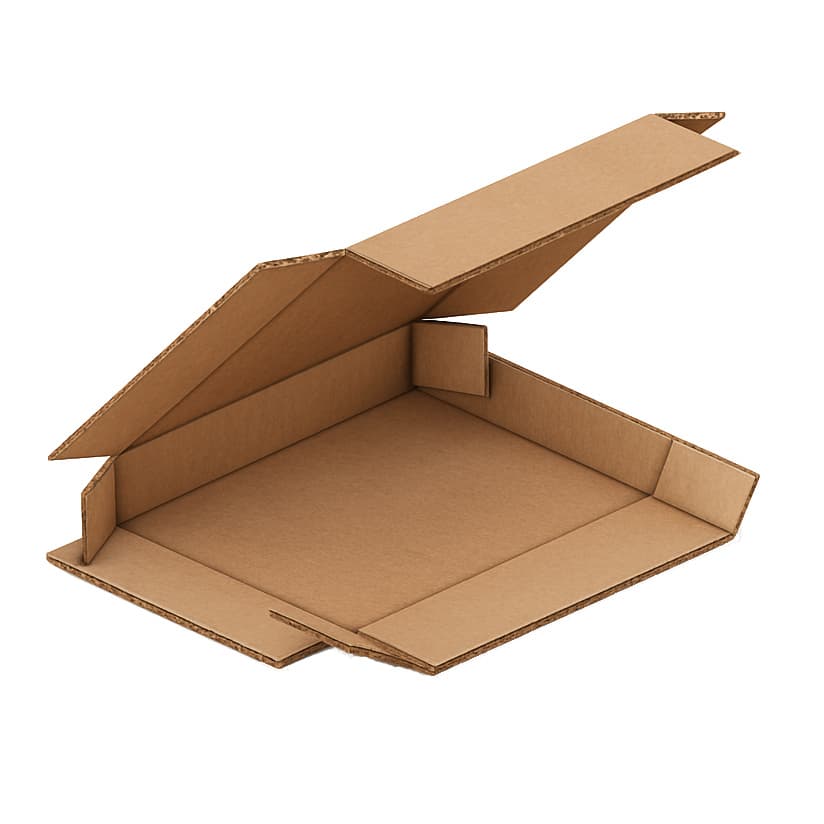 A wrap-around box is perfect for long, flat packaging. They are often made to measure, as they are used for unique products. Place your product on the cardboard, fold it over, and seal the box on all sides with tape.
