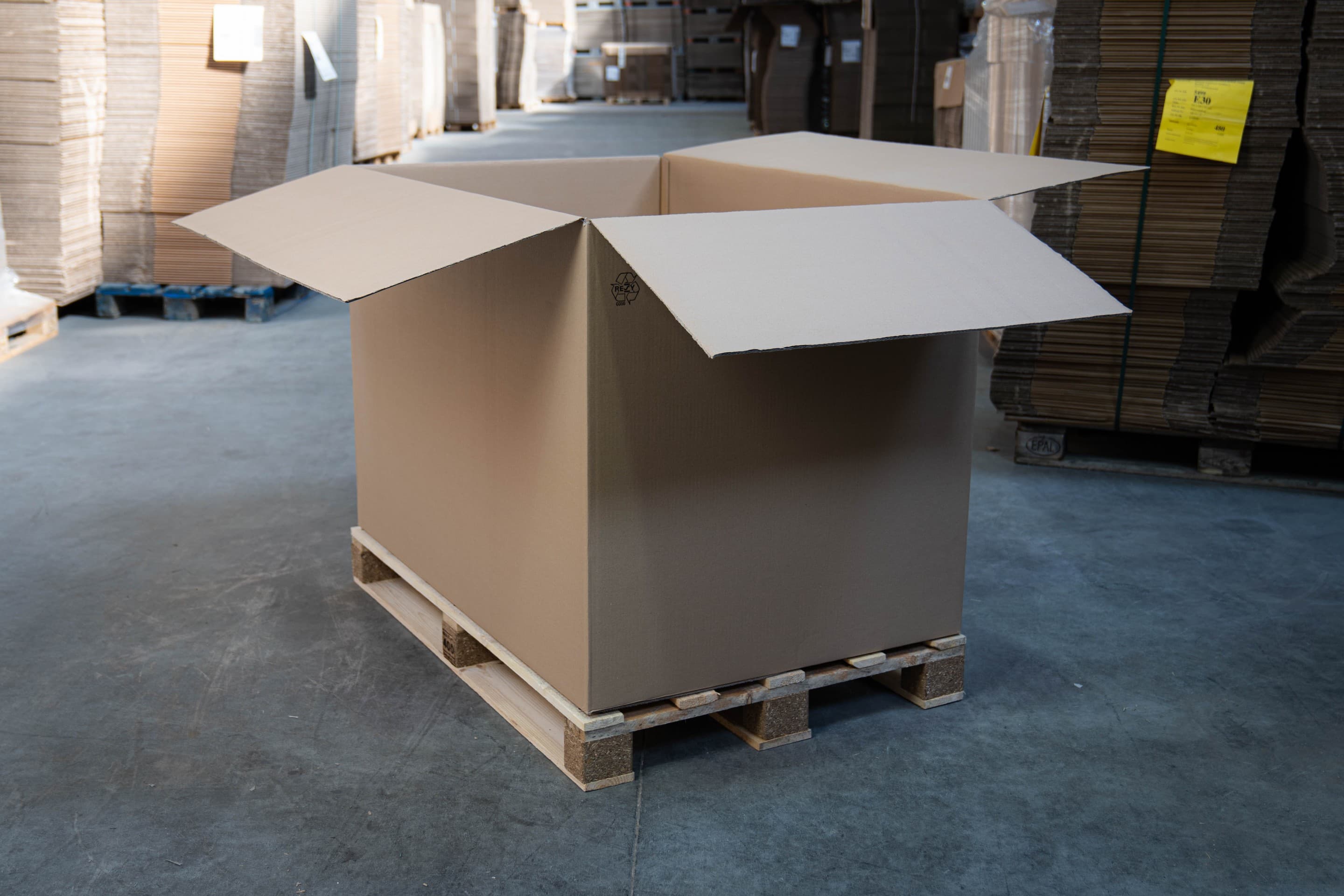 Je größer dein Produkt oder Volumen, desto größer der Karton. Große Faltkartons werden nicht nur für den Versand, sondern auch für die Lagerung verwendet. So findest du große Palettenkartons, die auf Palettenmaße abgestimmt sind, aber auch große Kartons, die sich gut auf Paletten stapeln lassen. Die besonders großen Faltkartons bestehen oft aus Doppelwelle (BC) oder sogar aus Dreifachwelle (ACA). So können sie mehr Gewicht tragen und bieten zusätzlichen Schutz.